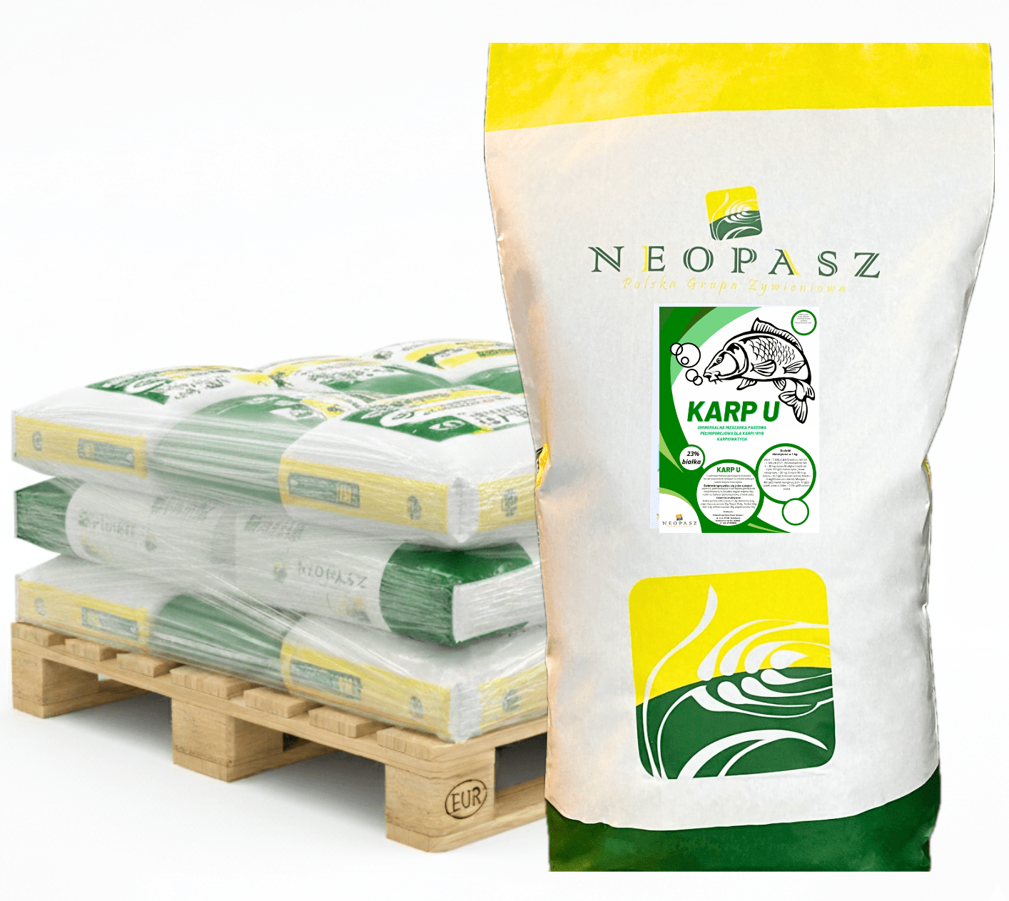 Pasza dla ryb Karp U od Neopaszu to profesjonalna, pełnoporcjowa pasza w formie tonącego peletu, zaprojektowana specjalnie dla ryb karpiowatych. Wysoka zawartość białka, aż 23%, pochodzącego z poekstrakcyjnej śruty sojowej, zapewnia szybki wzrost i zdrowie Twoich ryb.